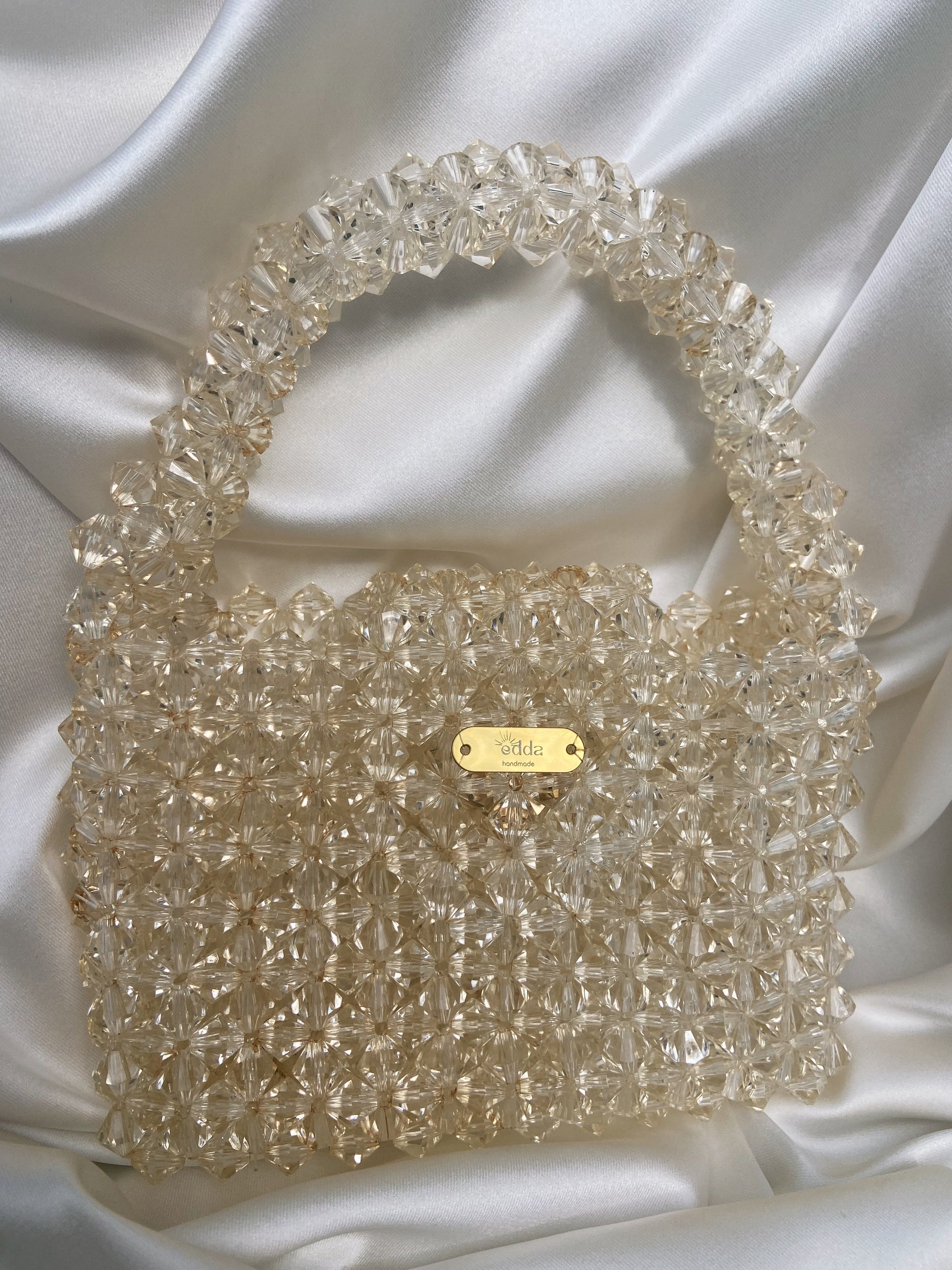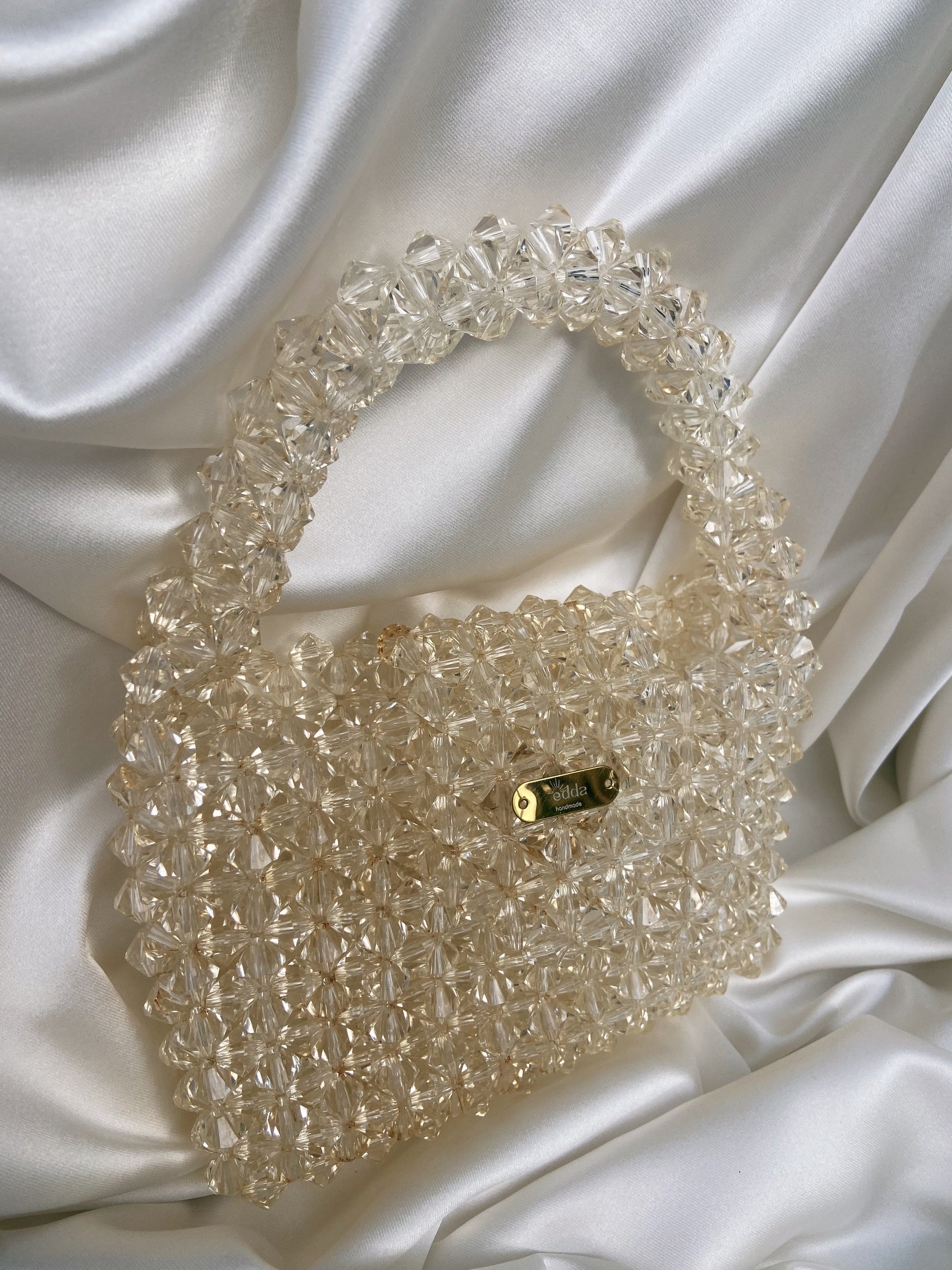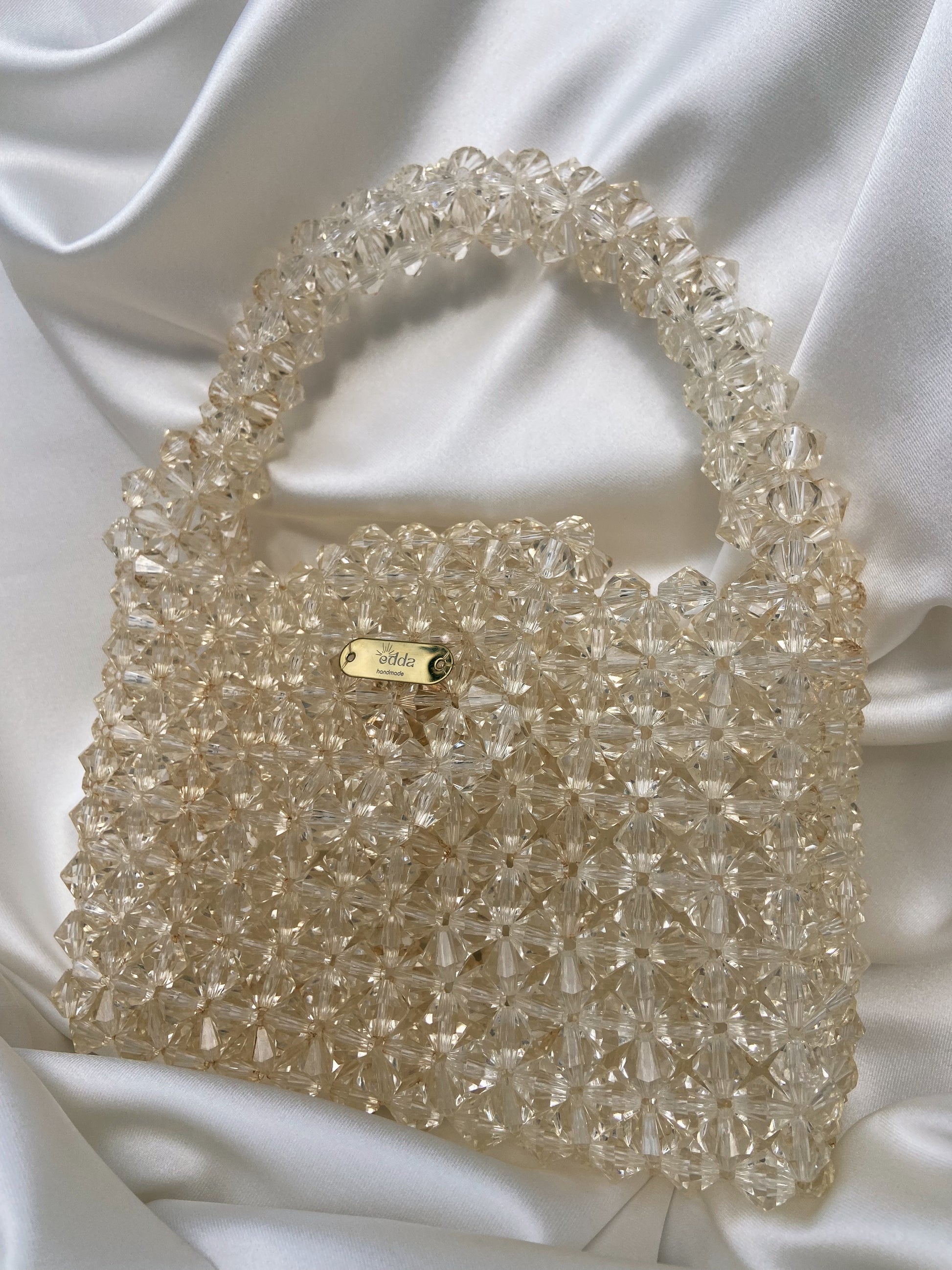 Sezonun yükselen yıldızı tereyağ sarısı, özel kesimli kristal boncuklarla adeta yeniden tanımlandı. Her boncuk, ışığı maksimum seviyede yakalayıp geri yansıtarak çantayı hareket ettikçe canlı ve büyüleyici kılar.